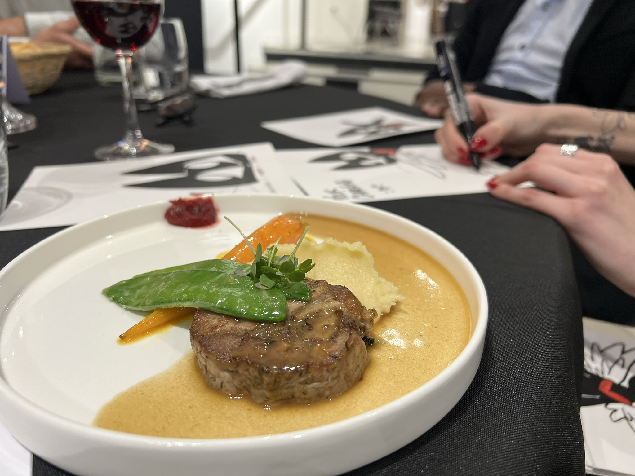 La soirée était aussi rythmée par l’artiste July Alquier, alias Catzpunk, qui réalisait en direct des croquis de chats dédicacés aux convives, apportant une touche artistique et décalée à cette belle soirée.