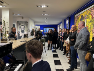 La soirée a débuté par un apéro « underground » dans les sous sols de la galerie, très original et convivial, accompagné d’une ambiance musicale portée par Hugo, pianiste hors pair.